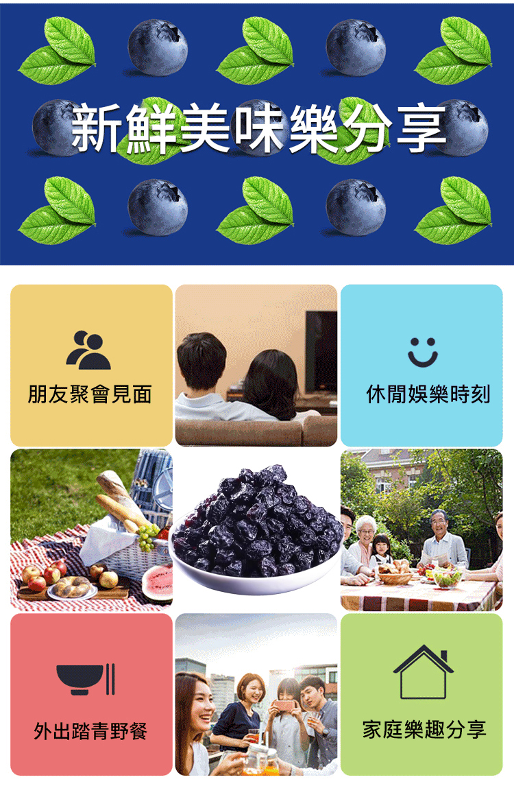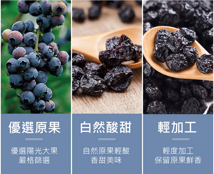 享受大自然的饋贈!野生藍莓製成乾果,美味與健康兼得!藍莓乾酸甜適中,老少咸宜。