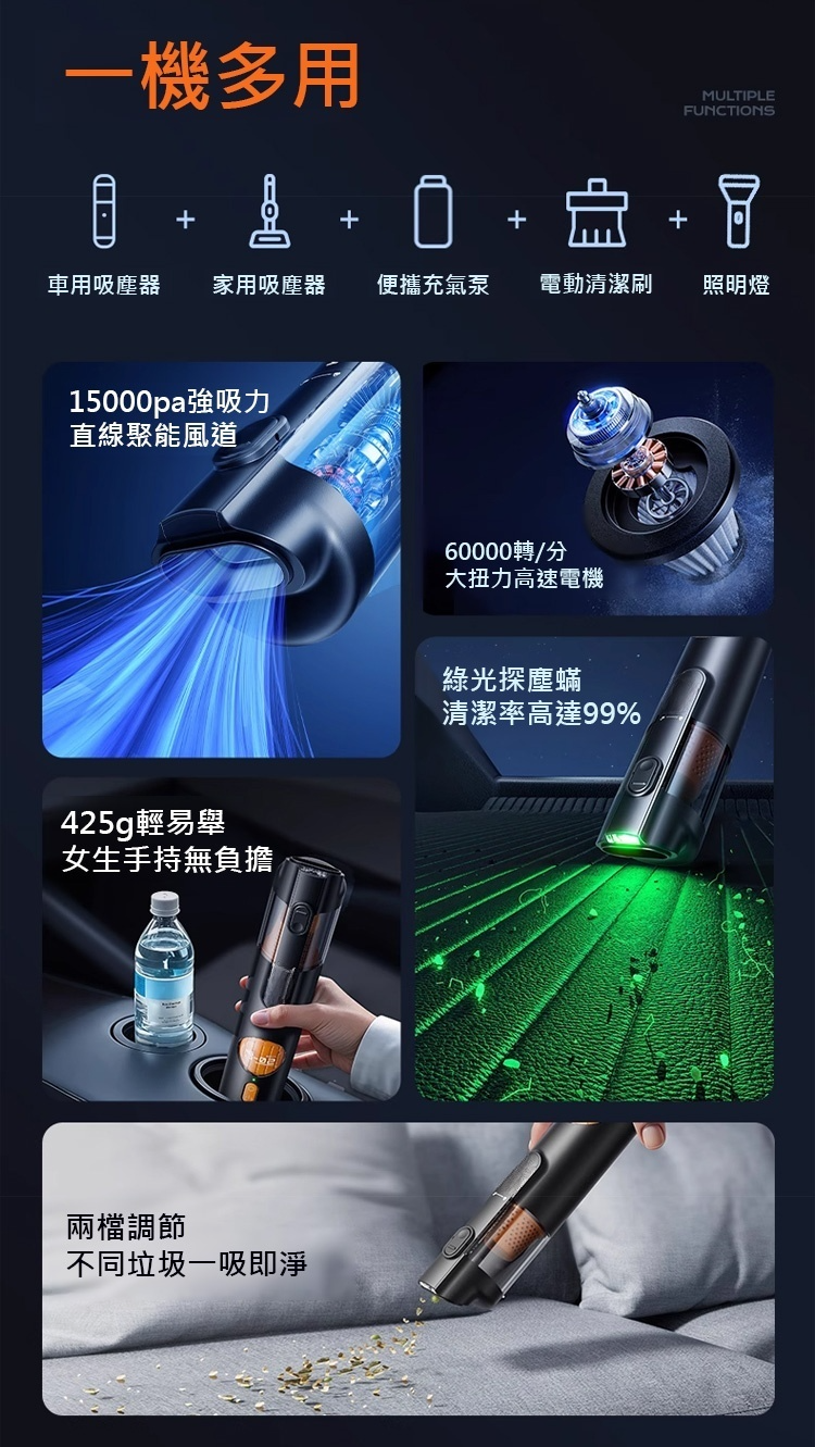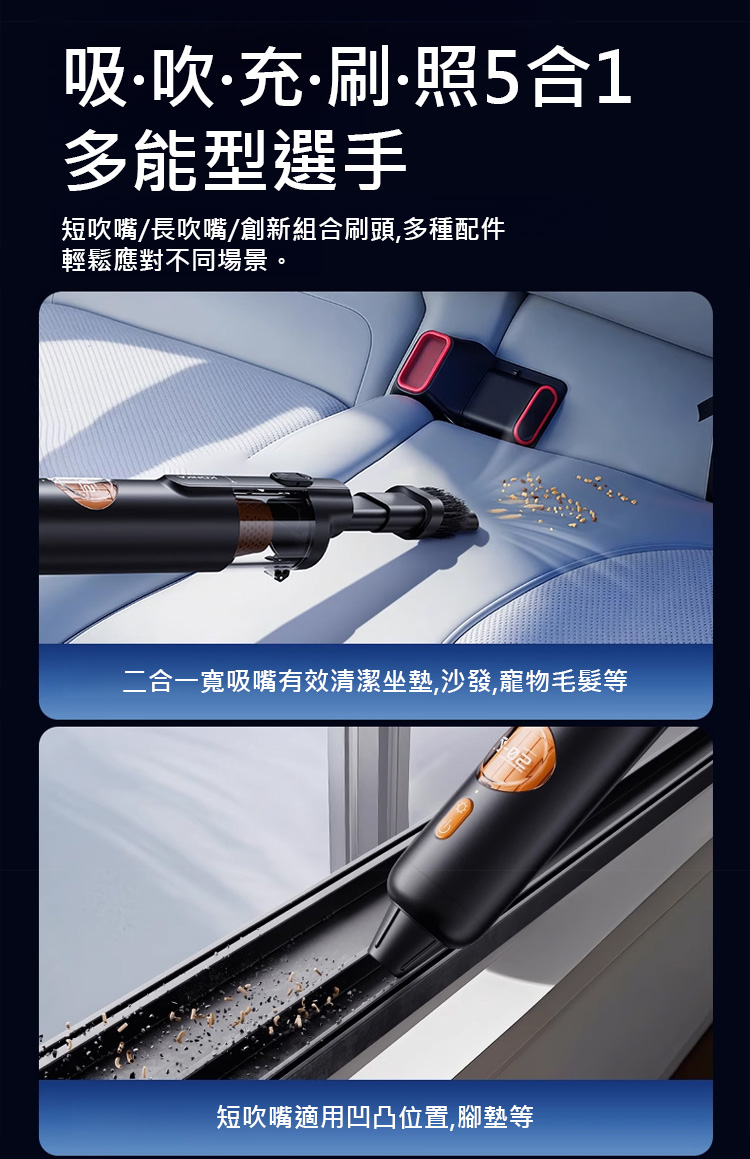 五合一智能手持吸塵器!吸塵、吹氣、充氣、抽真空、照明全具備,台灣居家打掃、出遊收納一機搞定,輕巧好握超實用~