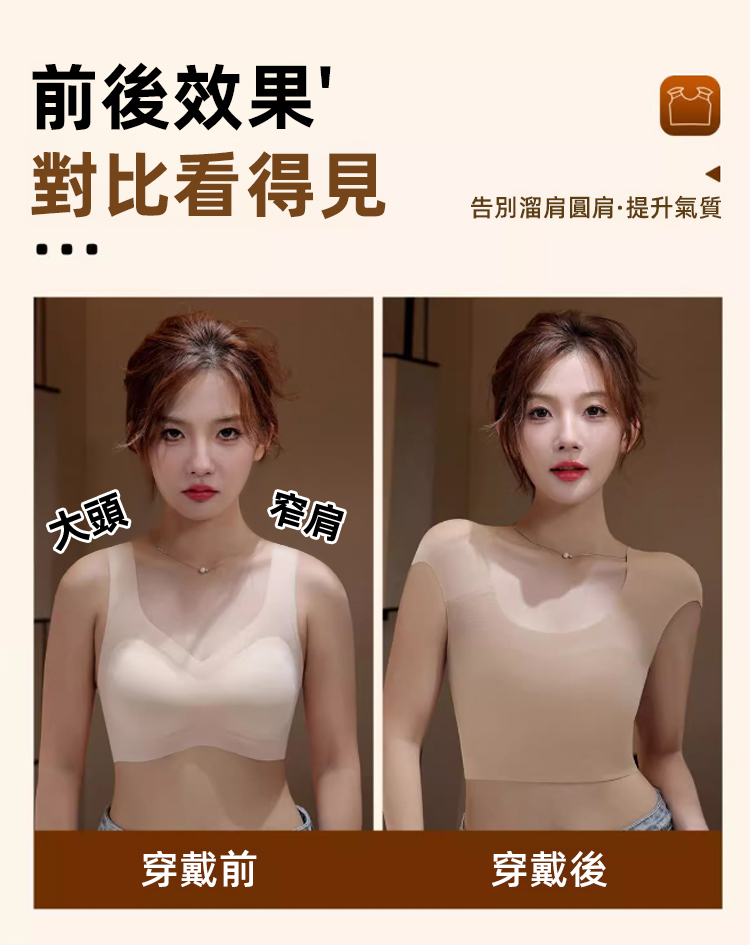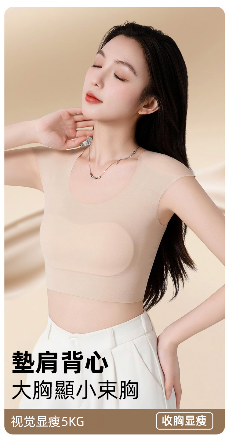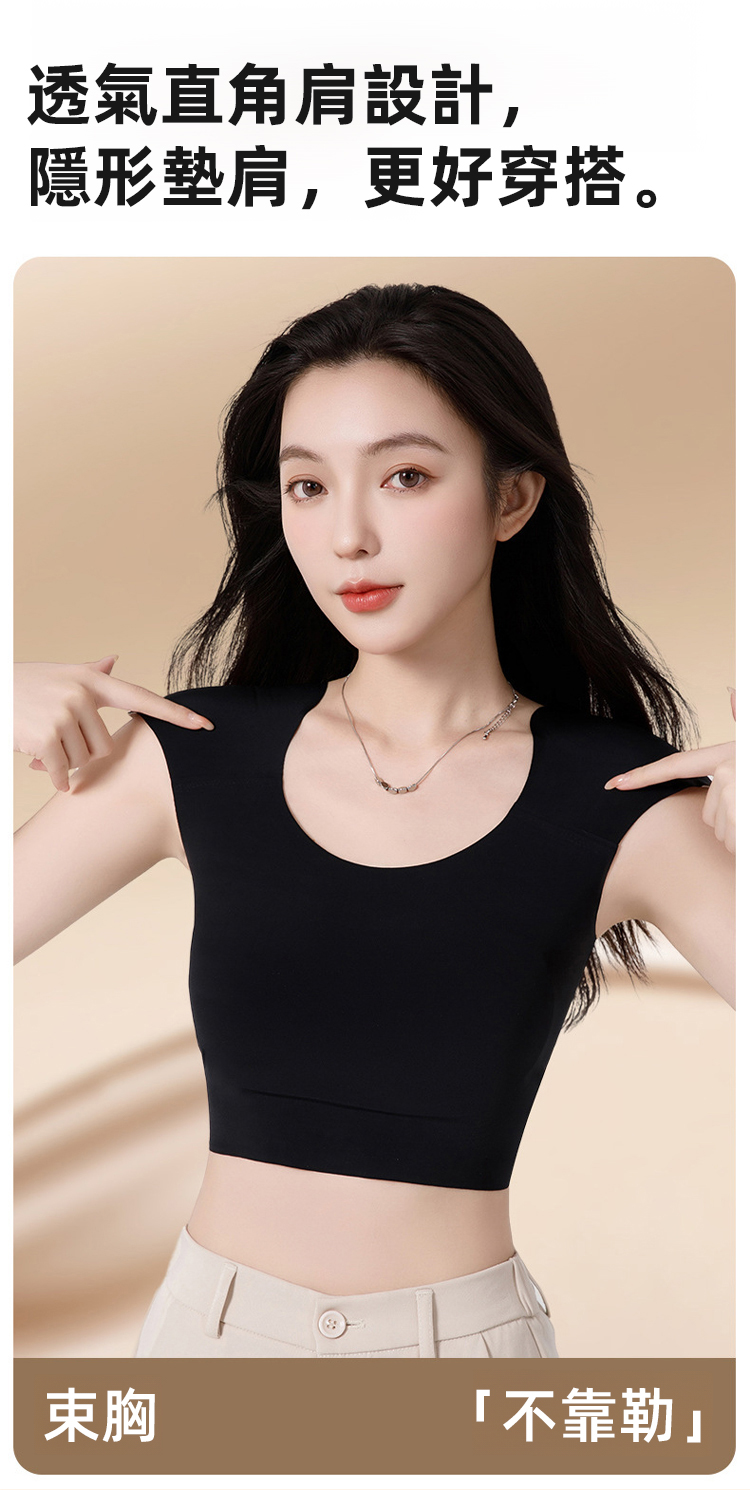 一體成型塑胸背心來吧!無痕設計不卡肉,粉底液隱形技術藏住內衣痕,大胸顯小超顯瘦,還能塑造直角肩,塑胸 + 墊肩二合一,穿西裝、洋裝都超搭