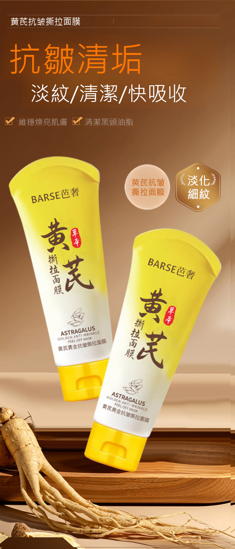 黃耆抗皺撕拉麵膜-撕下瞬間臉小一圈!一抹一撕,髒污黑頭全拔出,敷完嫩到反光,3天見證效果!