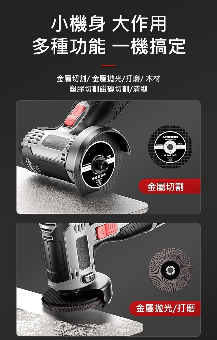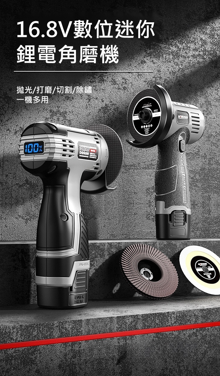 2025年台湾最新多功能角磨機! 📦手機大小📱強動力,16000轉/分。大容量電池+數字顯示🔋,防滑手把。切割、打磨、拋光一機多用,並配備多種配件。