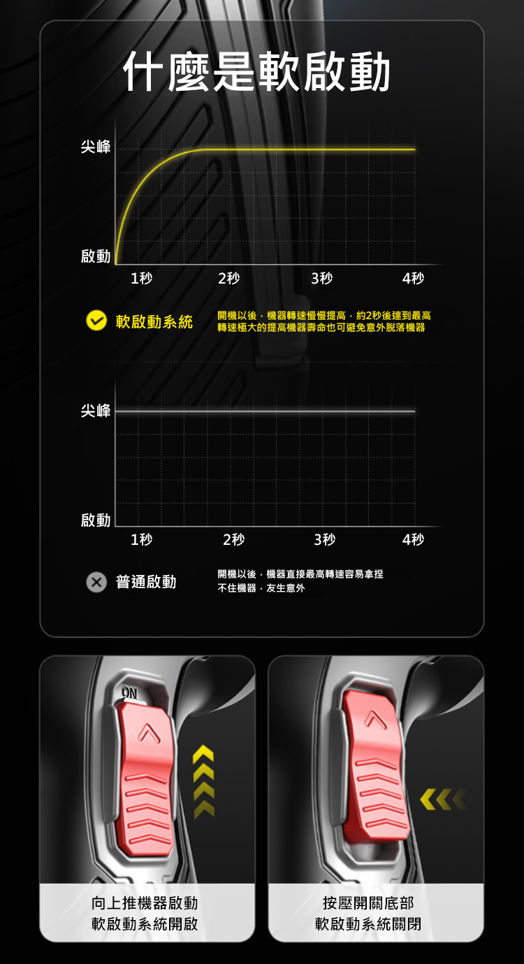 無線操作,超高轉速,深受眾多專業工匠的喜愛,並採用人體工學設計 超輕量,單手即可操作 → 即使女性也能輕鬆操作