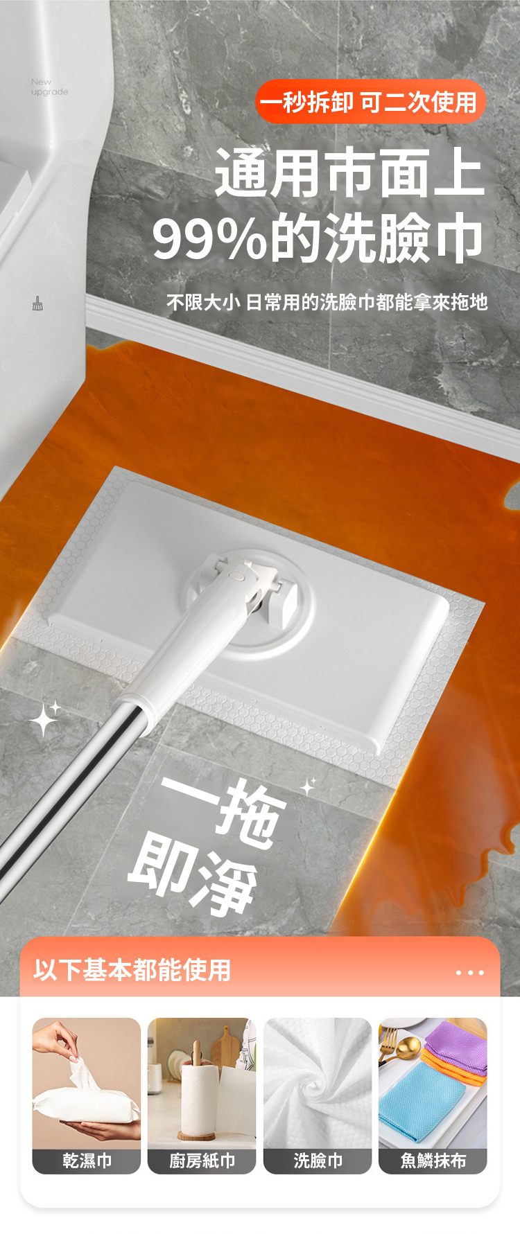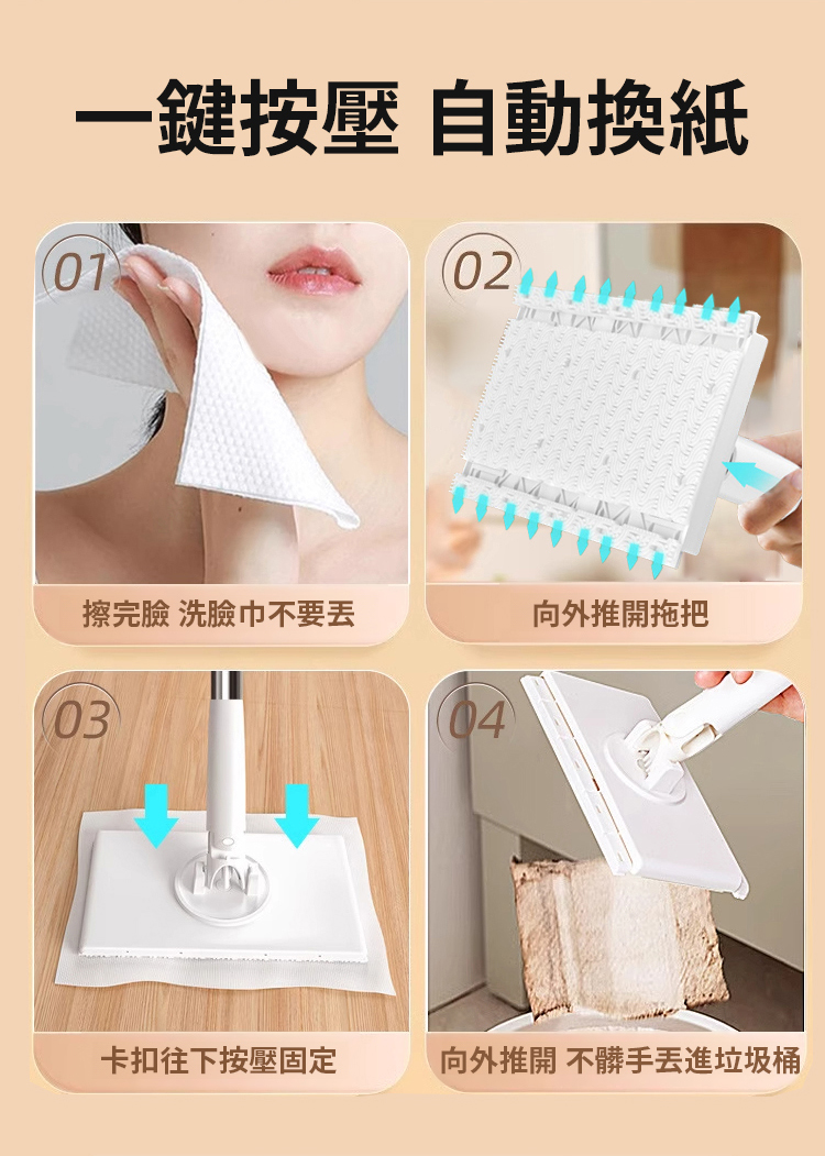 超省錢💥用過的洗臉巾不要丟💦一按一推秒變拖把,告別洗手🤚360°旋轉清潔✨用完即丟