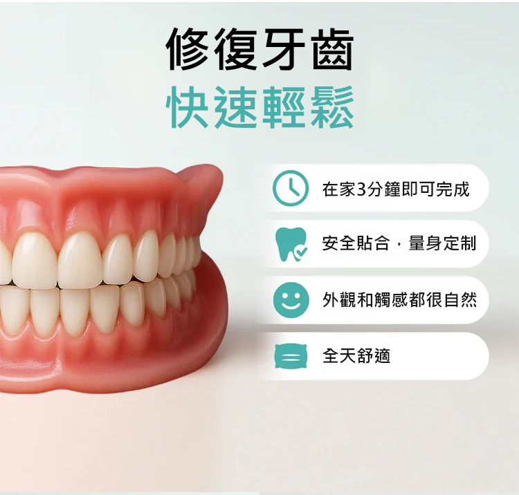 3分鐘即可徹底修復受損牙齒。 1秒即可安裝,外觀99%自然!配戴牙套式矯正治療,自信舒適地展現笑容!