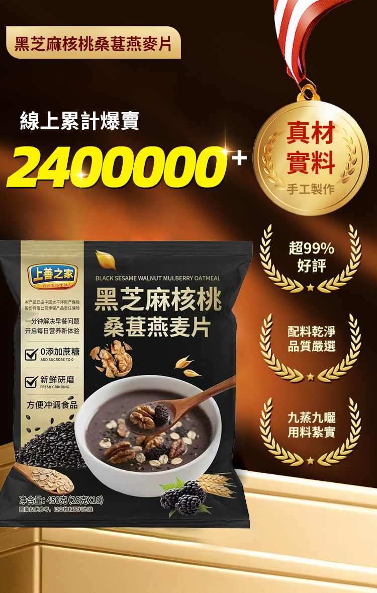 黑芝麻核桃桑葚燕麦片 💥 🌸以黑養黑食療养发,头发越喝越多,越喝越黑! 🌸每天一杯,改善睡眠,滋养秀发! 🌸精选天然食材,0蔗糖0添加! 🌸