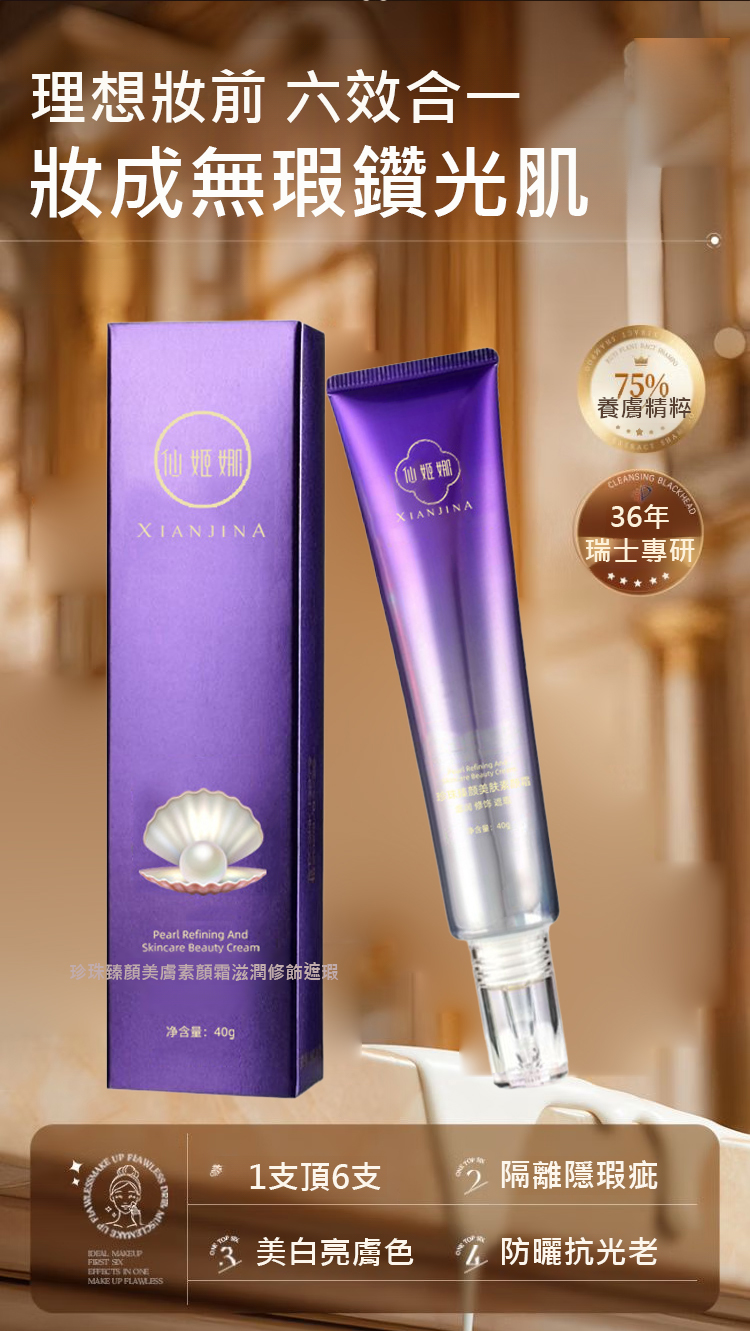 【一件搞定底妝】水光珍珠緊緻素顏霜,秒變素顔女神,9秒出門,瞬間變身自然美人,深層滋養肌膚,提亮膚色,持久保濕,告別暗沉,打造健康亮澤的素顏