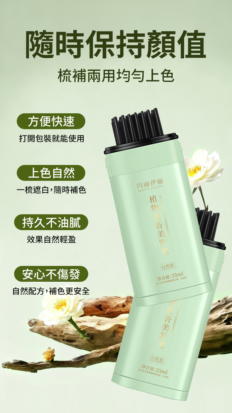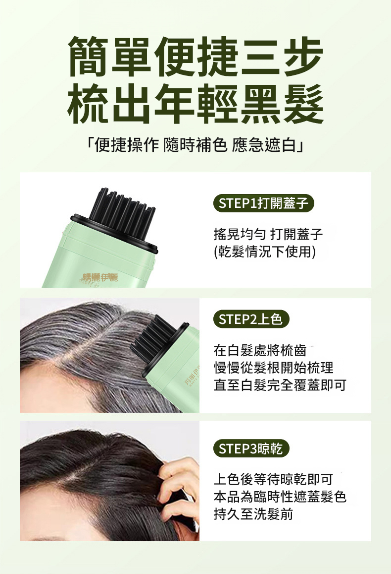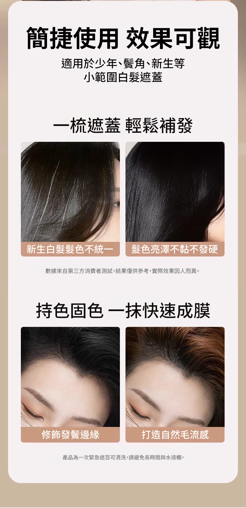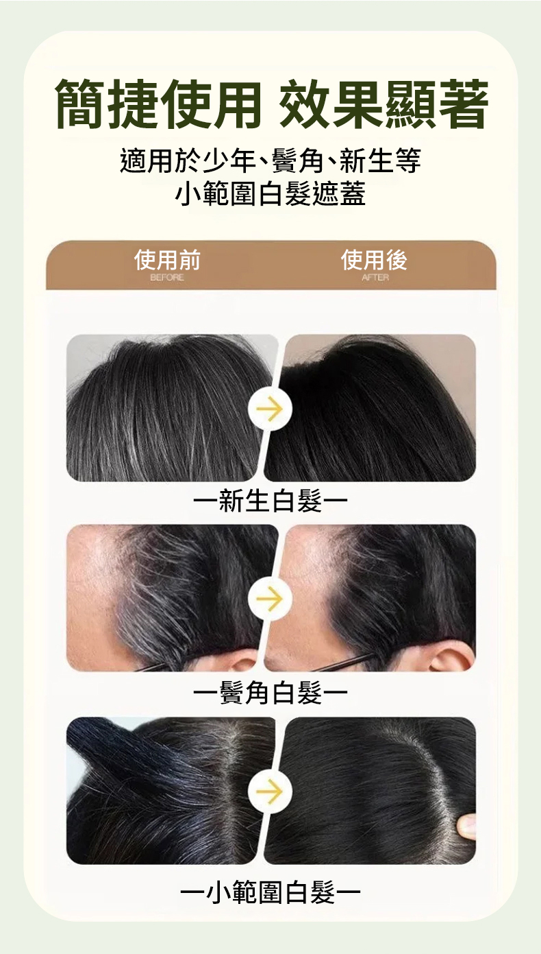 ✨【神奇染发笔】✨ 瞬间遮盖白发,防水防汗,不沾衣! 🔹 三大科技,告别染发烦恼 ✅ 即用:植物萃取配方,3秒遮盖白发,瞬间焕发年轻光彩 ✅ 持久:游泳、运动、下雨天皆宜 ✅ 非接触式染色:特殊设计的刷头,防止沾染头皮或手部