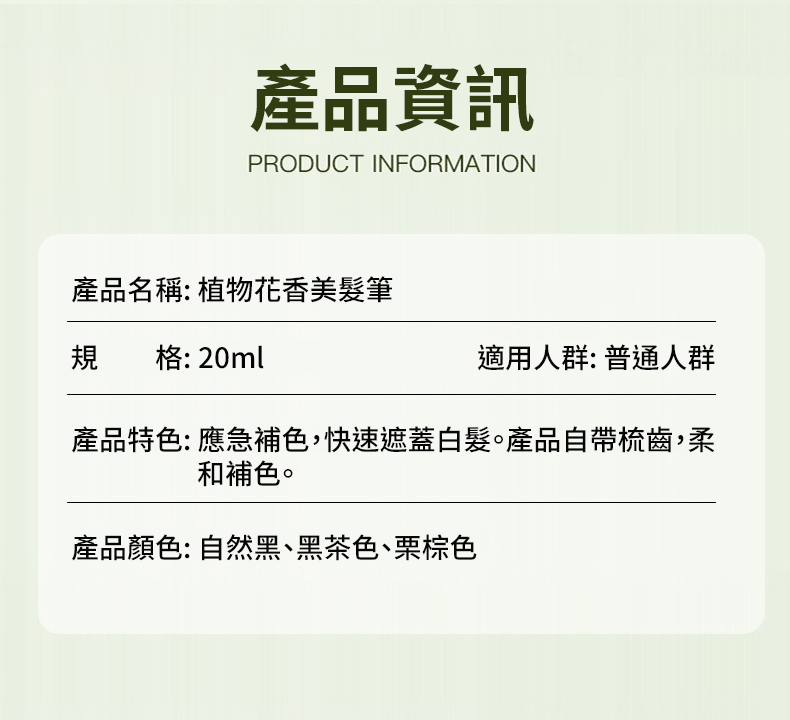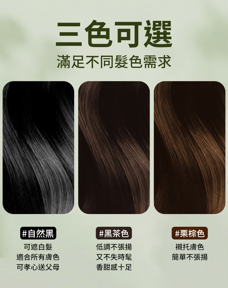 3秒快速染发!发色越白,效果越好,含有丰富的胜肽滋养成分,不只能遮盖白发,同时还能护理发丝,使发质柔顺有光泽,持久不黏腻。