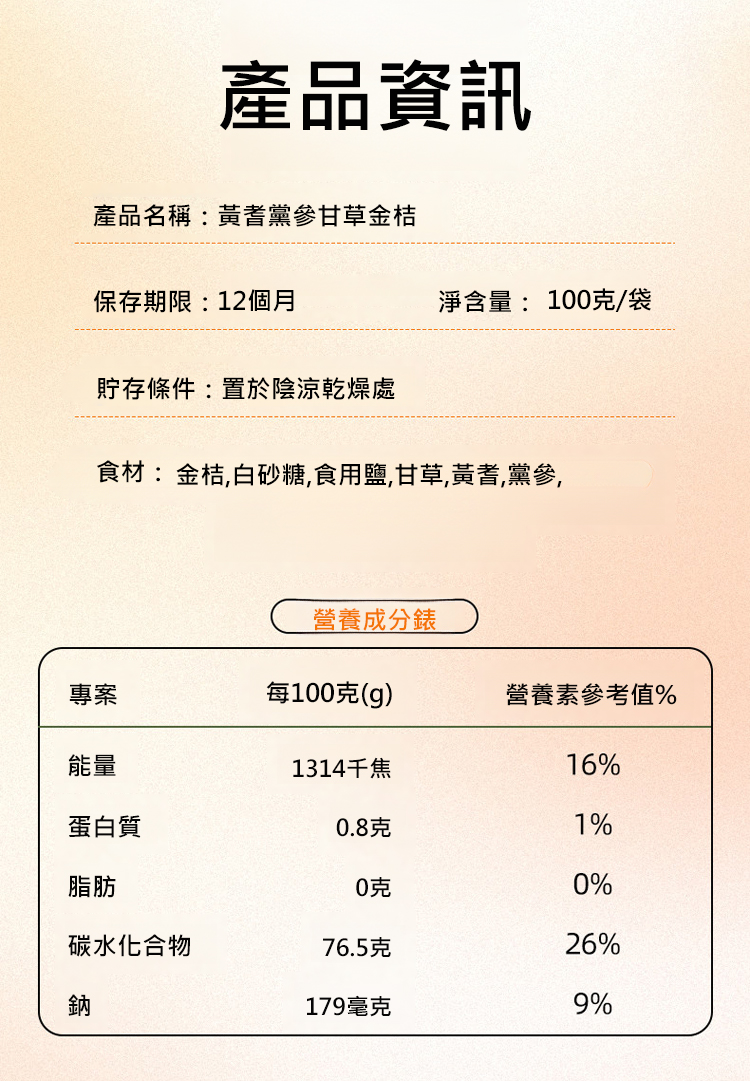 覺得體力大不如前嗎。黃耆與黨參雙效補氣,結合甘草與金桔的溫潤滋養,幫助您找回由內而外的平衡。天然草本配方,不含咖啡因與化學添加,是您日常調理體質的最佳選擇。全台快速到貨,歡迎點擊領取專屬養生方案。 黃耆黨參養生茶,補氣提神並開啟整天好活力 【漢方調理首選】黃耆黨參甘草金桔茶。專業比例調配,幫助維持生理機能並增強體力,讓您在忙碌生活中依然保有紅潤好臉色。 嚴選高品質漢方藥材,古法比例慢火烘焙。黃耆補氣、金桔潤喉,雙重守護您的健康需求。現在下單享有台灣限時免運優惠,為健康打好基礎。